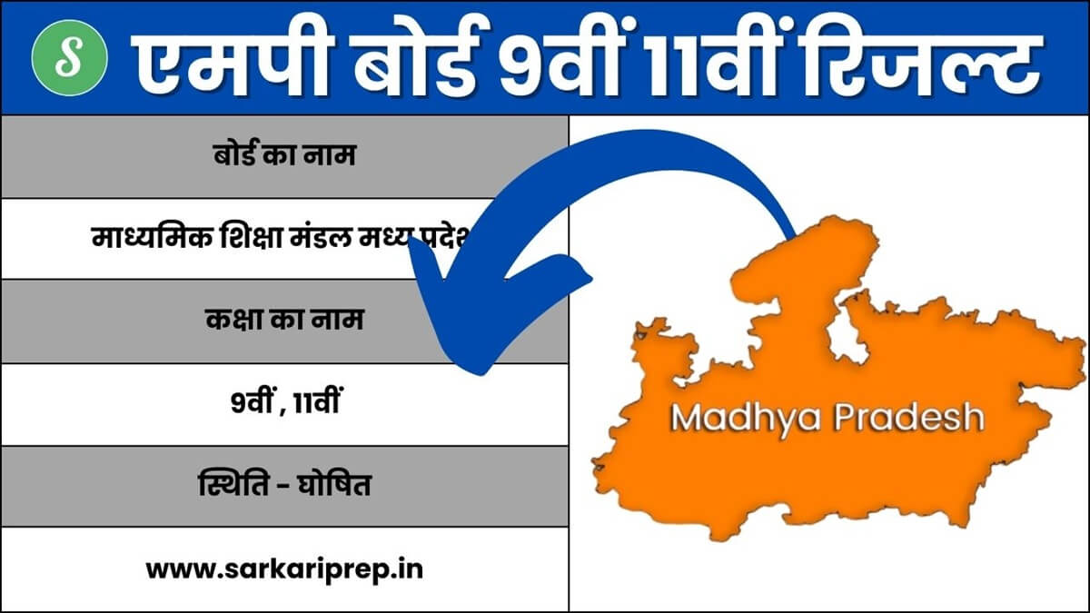 MP Board 9th 11th Result 2026 मध्य प्रदेश बोर्ड द्वारा आज एमपी बोर्ड 9वी रिजल्ट एवं एमपी बोर्ड 11वीं रिजल्ट घोषित किया जावेगा। एमपी बोर्ड कक्षा 9वी एवं 11वीं रिजल्ट 2026 की प्रतीक्षा कर रहे मेधावी छात्र-छात्राओं vimarsh.mp.gov.in एवं educationportal.mp.gov.in तथा sarkariprep.in पर नतीजा ऑनलाइन चेक कर सकते हैं। मध्य प्रदेश बोर्ड द्वारा एमपी बोर्ड कक्षा नवी एवं 11वीं की परीक्षा 3 फरवरी से 22 फरवरी तक आयोजित किया था। जिसकी मूल्यांकन प्रक्रिया पूर्ण होने के बाद परीक्षा परिणाम जारी कर दिया है। MP Board 9th 11th Result की डाउनलोड लिंक ऊपर दिया गया है। जिसमें रोल नंबर के माध्यम से ऑनलाइन डाउनलोड कर सकते हैं।