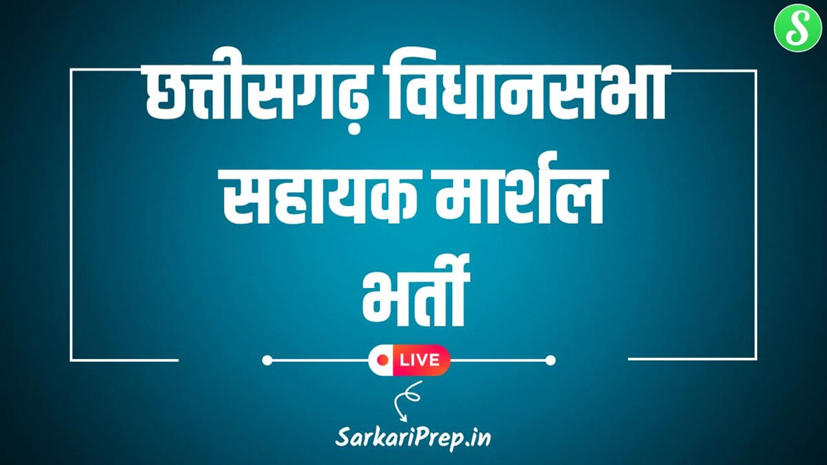 CG Vidhan Sabha Assistant Marshal Bharti 2025 छत्तीसगढ़ विधानसभा सचिवालय में सहायक मार्शल पदों पर वैकेंसी जारी करने वाले हैं। छत्तीसगढ़ प्रदेश के ग्रेजुएट पास महिला और पुरुष उम्मीदवार जो छत्तीसगढ़ विधानसभा सहायक मार्शल वैकेंसी के लिए फॉर्म अप्लाई करना चाहते हैं। वह सभी अभ्यर्थी ऑफिशल नोटिफिकेशन जारी होने के बाद अंतिम तिथि तक आवेदन भर सकते हैं। आपको बता दें कि इस भर्ती के तहत अभ्यर्थी की चयन फिजिकल टेस्ट एवं लिखित परीक्षा के आधार पर किया जावेगा।