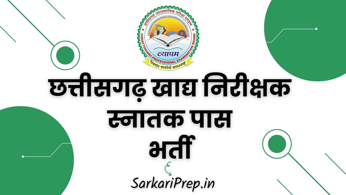 CG Vyapam Food Inspector Recruitment 2026 छत्तीसगढ़ खाद्य विभाग ने छत्तीसगढ़ व्यापम के माध्यम से प्रदेश के ग्रेजुएट पास महिला पुरुष अभ्यर्थियों के लिए खाद्य निरीक्षक पदों पर वैकेंसी जारी करने वाले हैं। छत्तीसगढ़ खाद्य निरीक्षक भर्ती 2026 के लिए योग्य एवं इच्छुक उम्मीदवार निर्धारित शैक्षणिक योग्यता की पात्रता रखते हैं, वह सभी अभ्यर्थी ऑफिशल वेबसाइट पर नोटिफिकेशन जारी होने के बाद ऑनलाइन फॉर्म प्रस्तुत कर पाएंगे। सीजी व्यापम फूड इंस्पेक्टर भर्ती 2026 की तैयारी कर रहे अभ्यर्थी इस भर्ती से जुड़ी संपूर्ण जानकारी यहां अवलोकन कर सकते हैं। हाल ही में मिली जानकारी के अनुसार छत्तीसगढ़ खाद्य नागरिक आपूर्ति एवं उपभोक्ता संरक्षण विभाग में रिक्त पदों की पूर्ति के लिए नोटिफिकेशन आमंत्रित करने वाले हैं।